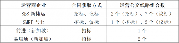 2014年,新加坡政府开始进行地面公交管理机制改革,实施公交承包模式。2016年8月,在原有线路运营牌照到期之际,交通局将到期公交线路运营权从两大企业收回。根据公交场站位置、客运量、分布地区等指标将多条线路搭配组合,并以“线路组合”为单位公开招标运营企业。