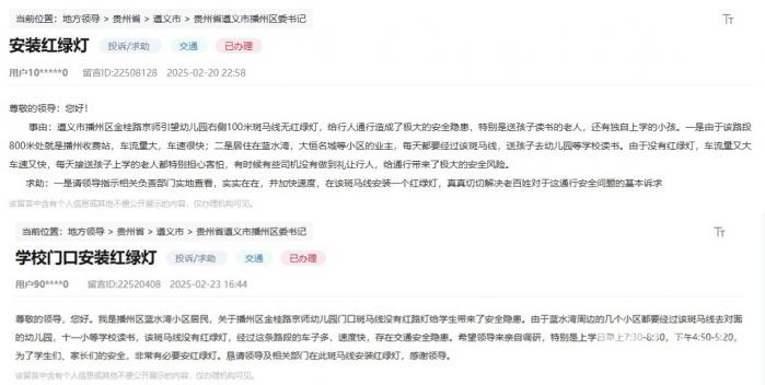 遵义市播州区多名居民通过留言板,反映同一个“急难愁盼”