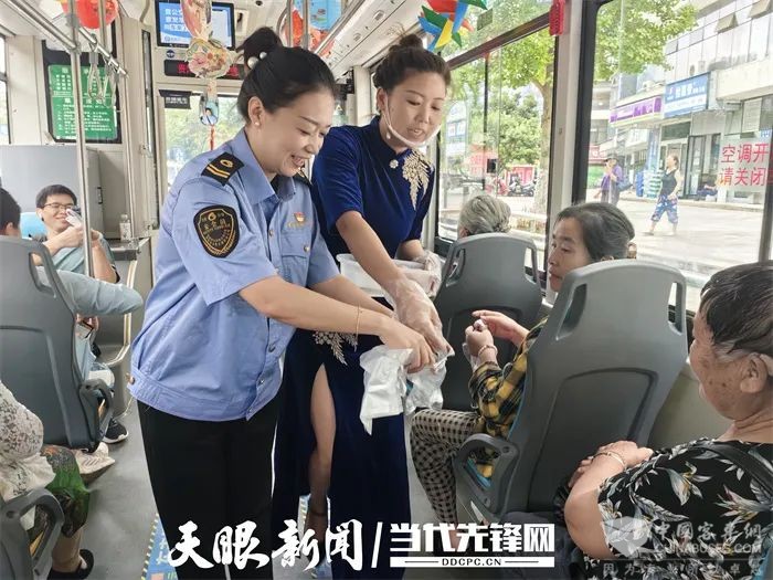 廖莎(左一)热心服务乘客