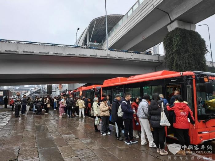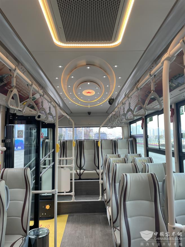 美好出游体验离不开良好运输装备支撑。“新红岩巴士是金旅最新打造的公交车型——朝歌,具有外观设计简洁、内部空间宽敞等特点,同时聚焦重庆这条红色旅游线路用车需求,升级车内配置,精心优化多处直接影响乘坐体验的细节。”金旅客车重庆地区销售经理倪坚锋介绍,为体现该车和线路背景相呼应,车内内饰配色如地板、座椅、扶手、风道以及车顶底色等保持高度统一,同时为航空高靠背座椅背后增设抓手,全力营造独具特色的良好乘车环境。