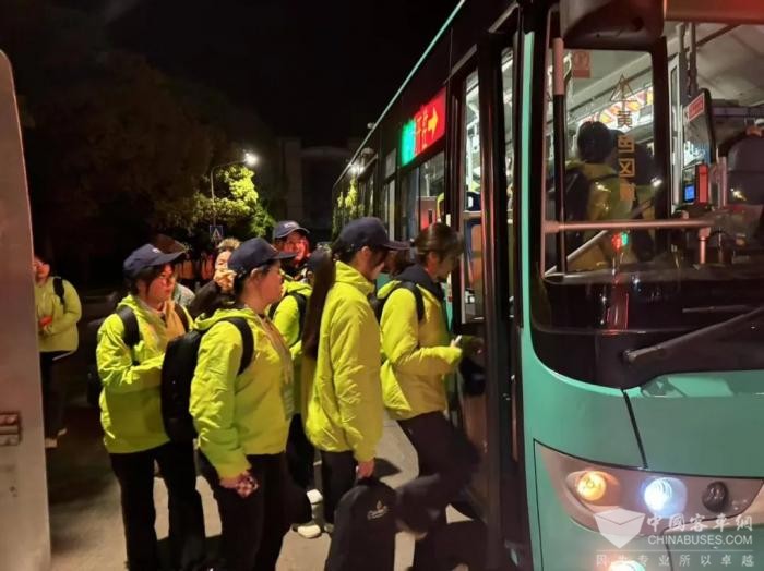 不到凌晨四点,公交驾驶员们已早早来到车场,检查车况后按计划到达各自指定位置待命,负责将参赛选手接送到起点,将志愿者、医疗队疏散到城市各个方向,确保没有滞留现象。现场的工作人员耐心为选手们解答疑问,提供交通指引。