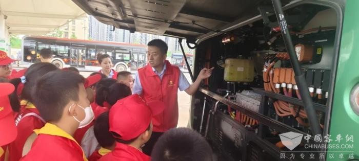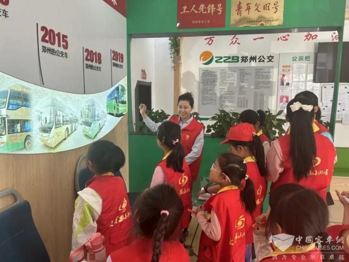 “大家一定要记着,乘坐公交车时不要把头、手伸出窗外!”来自郑州公交集团苏师傅党员志愿服务队的现场讲解员马薇薇给孩子们介绍着。