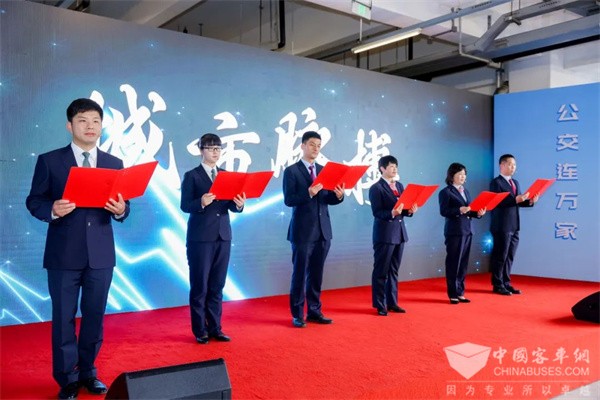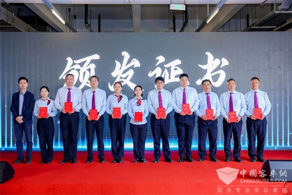 在表彰环节,首届“十百千幸福联动计划”获奖代表先后依次登台接受荣誉表彰。该计划自2024年启动以来,围绕“幸福六站”体系,精心选拔出“十佳·幸福车队”“百优·幸福线路/班组”以及“千星·幸福达人”,依据“爱自己、爱家人、爱岗位、爱伙伴、爱集体、爱乘客”的六爱准则,发掘了500位幸福达人、46条幸福线路、10个幸福班组和10个幸福车队,使“幸福”这一概念变得具体而生动。