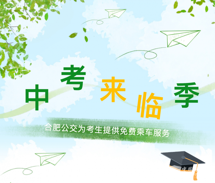 关注社会,关心中考,关爱考生。到2025年,合肥公交集团已连续23年向中考考生奉献爱心。中考期间,凡在省城合肥、肥东县店埠镇、肥西县上派镇、长丰县北城片区等合肥公交集团线网覆盖范围内,中考考生均可持本人中考准考证免费乘坐合肥公交集团全部319条常规线路公交车。
