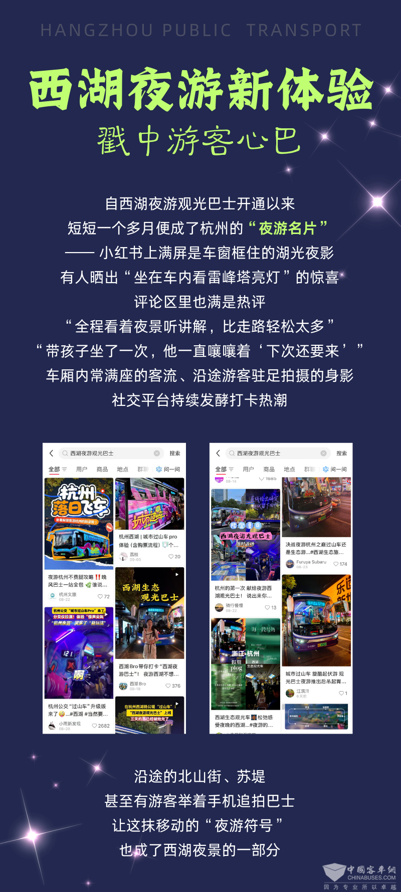 自西湖夜游观光巴士上线以来,一个月的时间里,也是收获了满屏的喜爱与热闹。每天傍晚,有刚下班赶来的上班族,想借晚风缓解一天疲惫;有父母带着孩子来的家庭,把夜游巴士当成周末亲子时光;还有不少外地游客,特意将 “坐夜游巴士赏西湖” 列入行程清单。