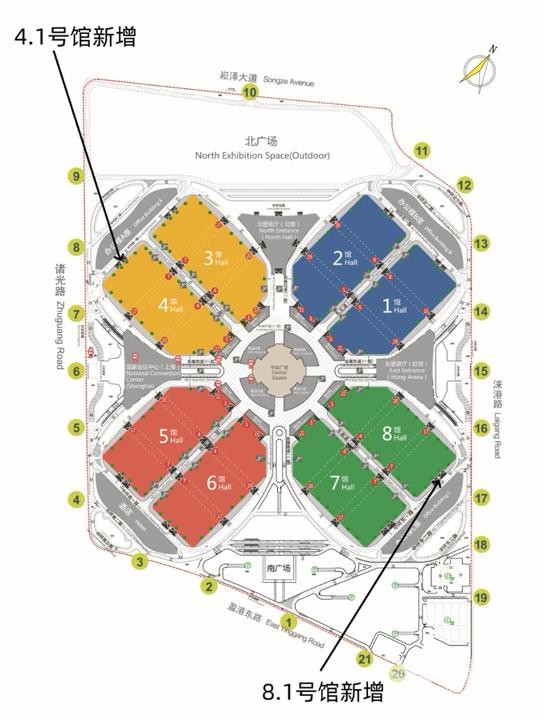 为提升国展中心场馆内部便利,本届进博会新增4.1H馆、8.1H馆12、13号门安检验证口作为平峰期人员出入口,在国家会展中心东西南北4个登录厅、馆间通道、办公楼等处共设置人员验证点28处,进一步缩短进馆排队时间。