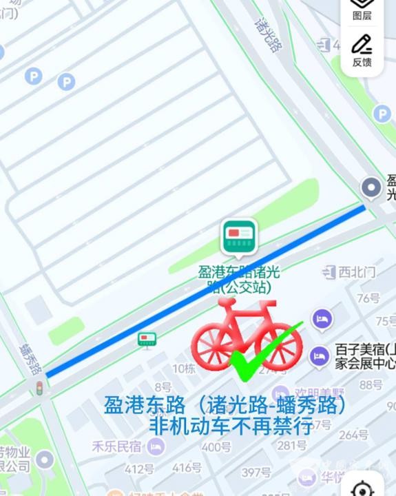 12.在去年进博会期间非机动车管控措施的基础上,取消盈港东路(诸光路至蟠秀路)段非机动车限行措施。