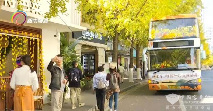 乘客:“因为可以经过昆明几个比较出名的景点,然后直接到海埂大坝,坐双层巴士,小朋友也是很喜欢。”