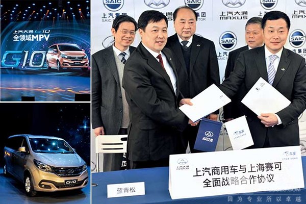 2月28日,G10发布会当天,上汽商用车公司总经理蓝青松和上海赛可电子商务有限公司CEO夏军签订战略合作,G10将推出一款时尚版在3月28日正式上线的上汽集团O2O电商平台——车享网独家授权销售。