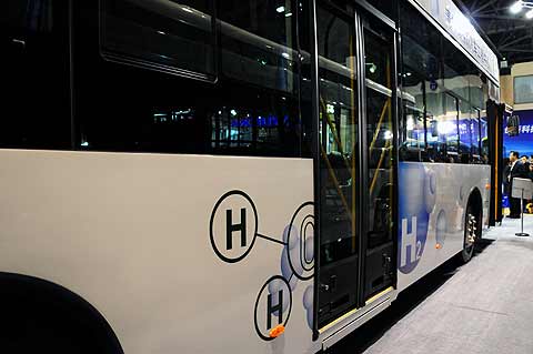 在众多新能源客车的展览中,苏州金龙的一款燃料电池客车让许多观众驻足关注,据了解,该款车为国家863项目,氢燃料电池低地板城市客车KLQ6129GQH2,此款以氢气为燃料的KLQ6129GQH2低地板城市客车,由苏州金龙和清华大学联合研制,是国家“863计划十一五攻关项目:节能与新能源汽车”——氢燃料城市客车研发项目。这也是海格客车继2006年初推出氢燃料城市客车后,推出的新一代升级产品。