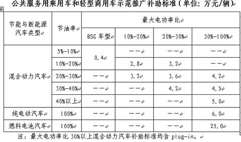 2009年2月,为切实推动节能与新能源汽车规模化、产业化,科技部、财政部与科技部又联合发出《关于开展节能与新能源汽车示范推广工作试点工作的通知》,决定在北京、上海、重庆等13个城市开展节能与新能源汽车示范推广试点工作,鼓励试点城市率先在公交、出租、公务、环卫和邮政等公共服务领域推广使用节能与新能源汽车。通知还要求地方财政安排一定资金,对节能与新能源汽车配套设施建设及维护保养等相关支出给予适当补助。随后,财政部发布了补助细则。细则中指出,按照节能类型、节油率和最大电功率比的不同,购买节能与新能源汽车可获4000元到60万元不等的补助。
