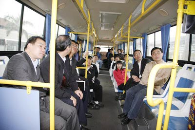 广交、广汽相关领导乘坐玉柴城市客车型混合动力样车