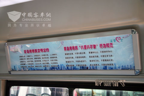 车上的李先生也向记者表达了自己的感慨,顺着他的描述,记者注意到车内的一些细节,进门处放着几把雨伞,前排透明的便民盒,整个车厢内没有一条广告,各种公益宣传错落有致地分布在车子侧壁上,温馨的提示小标语读着很贴心。李先生说,他是销售人员,因为工作性质经常全国各地跑,也坐过很多城市的公交车,但这趟坐着,让人感觉真舒服,车里放着红歌,窗外吹来湿润的风,青岛的“温馨巴士”真是该向全国推广一下。