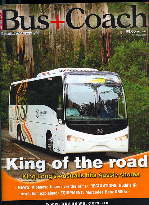 该杂志近日又发布封面文章King of the road ,The Long wait is over《公路之王,长久的等待已经结束》,除了对大金龙(澳大利亚)进行全面介绍,并在文章中介绍了大金龙研发生产制造的细微态度与专业水平。而文章巧妙运应用King Long 品牌将大金龙誉为“公路之王”,代表当地媒体及行业对大金龙产品进入澳大利亚市场的重视和期待。