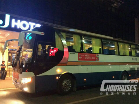中国客车英文网【www.chinabuses.org】:在亚太经合组织(APEC)第二十三次领导人非正式会议即将召开之际,菲律宾马尼拉不时看到会场内外的中国元素,感受到浓郁的“中国风”。走进APEC国际媒体中心所在地马尼拉世界贸易中心,人们能看到往来穿梭的免费媒体班车。当得知记者来自中国时,菲律宾创世纪交通运输服务公司运营经理赖利·萨尔布纳热情招呼记者上车,手指向车身的汉语拼音标识对记者说:“看这儿,宇通,来自中国!”