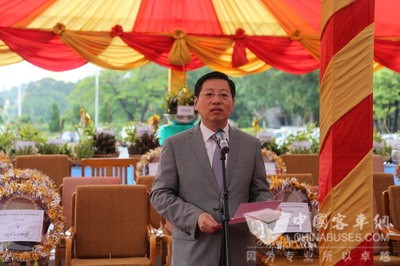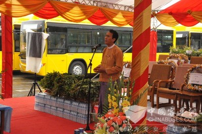 洪大使致辞表示,今天我们在历史悠久的仰光大金塔见证下,共同庆祝中国宇通公司和安凯公司向仰光省移交中国生产制造的燃气公交车。这是中缅两国开展民生合作的又一个新成果,也是中缅传统胞波友谊的又一个新标志。仰光省今年初实施公交改革后,面临车辆严重短缺问题,给民众出行造成不便。作为缅甸友好邻邦和胞波兄弟,中方根据仰光省政府请求,在第一时间推荐有实力、有信誉的中国企业与仰光省政府开展合作。中国宇通公司和安凯公司在承接任务后,集中两家企业资源和力量,加班加点安排生产,在不到2个月的时间里保质保量完成了任务,并提前履约交付了车辆。这充分体现了中国企业强大的实力和良好的信誉,希望中国宇通公司和安凯公司再接再厉,继续做好后续服务工作。相信在有关各方的共同努力下,这些公交车将平稳顺利运营,成为仰光一道流动的风景线,给民众出行带来便利,给民众福祉增添吉祥。
