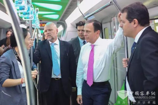 若昂·多利亚市长详细了解了比亚迪各产业的发展情况,盛赞其提出的绿色大交通解决方案,并亲自体验“云轨”。市长表示,“云轨”是解决城市交通拥堵很好的方案,在圣保罗这样交通繁忙而拥堵的城市,完全可借鉴深圳的模式,通过轨道交通加新能源车综合解决道路拥堵与尾气排放而造成的空气污染问题。