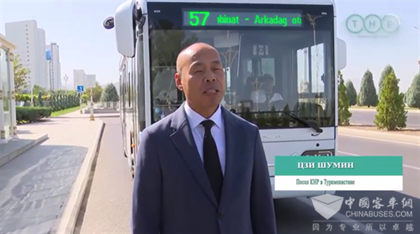 在活动现场,多国外交使节乘坐宇通客车游览阿什哈巴德,中国驻土库曼斯坦大使吉树民接受采访时指出:“中土两国建交三十余年来,关系不断迈上新台阶。特别是在基础设施建设、能源合作、交通改善等领域,双方合作成果丰硕。此次宇通公交的批量交付,是两国互利合作、友好关系不断深化的生动体现。”