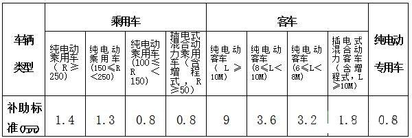 补助标准主要依据中央财政补助标准以及节能减排效果,并综合考虑生产成本、规模效应、技术进步等因素逐步退坡。2016年补助标准:乘用车、客车补助标准在2015年省级补助基础退坡10%,专用车补助标准在2015年省级补助的基础上退坡30%。各类新能源汽车购置补贴标准如下: