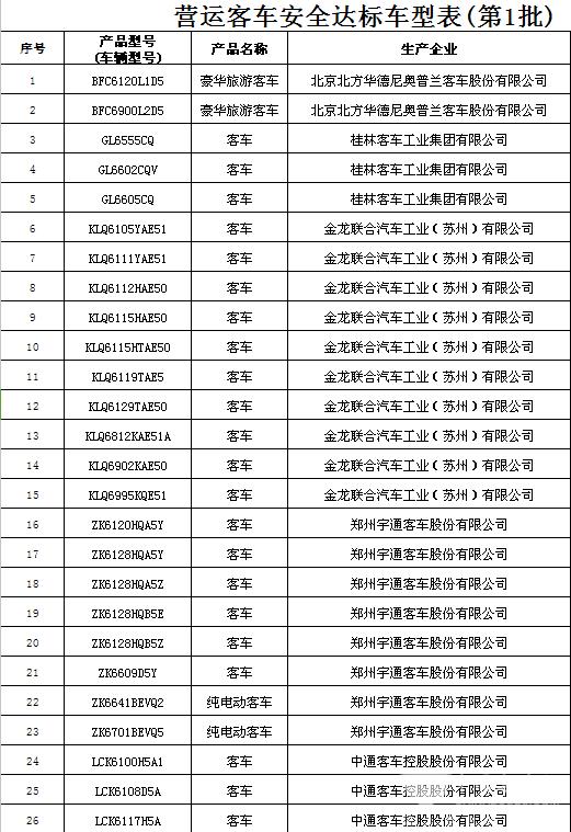 交通部首批营运客车安全达标车型公示,58款车型入选