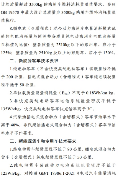 工业和信息化部:关于调整减免车辆购置税新能源汽车产品技术要求的公告