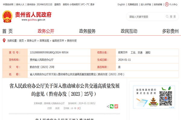 贵州省深入推动城市公共交通高质量发展意见发布