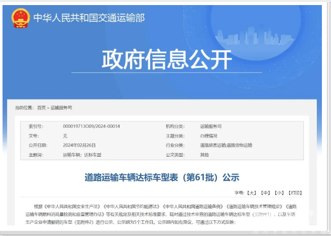 公路客车(道路运输客车)是客车市场中最传统的领域,也是客车中最大的细分市场。而公路客车准入运营必须2024年2月26日,交通部公示了道路运输达标客车车型表(第61批,见下截图),这也是2024年以来交通部公示的第3批客车达标公告车型。达到国家有关标准。因此,交通部公示的道路运输客车达标车型对车企下一步公路客车产品的策划可能会对公路客车行业的发展能起到一些“风向标”的作用,对客车企业今后的公路客车产品布局有较强的指导价值。