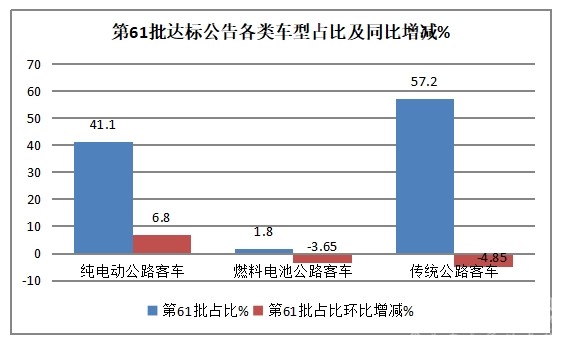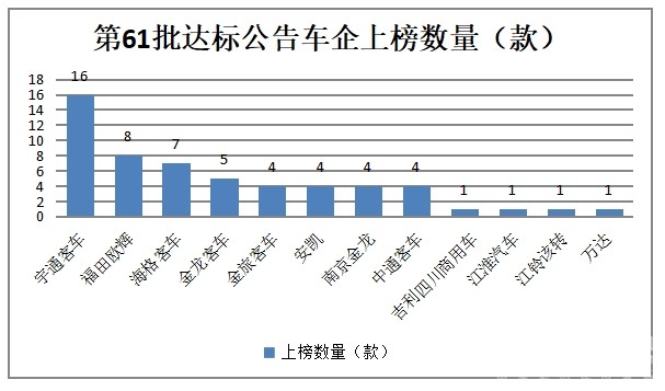 上表说明,在第61批交通部上榜达标道路运输客车车型中: