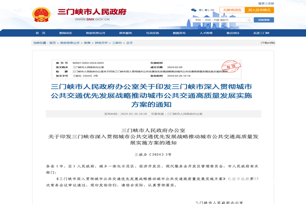 关于印发三门峡市深入贯彻城市公共交通优先发展战略推动城市公共交通高质量发