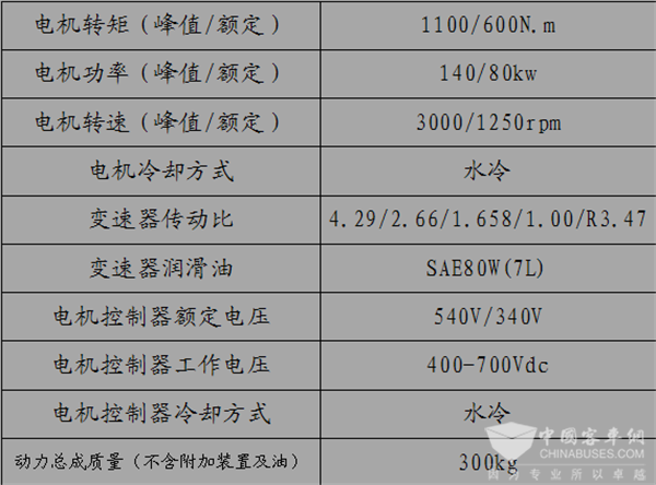 綦齿传动4EPT1210纯电动新能源客车动力系统参数配置