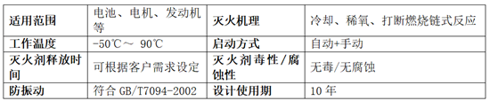 泽福®电池智能液体灭火系统技术参数表: