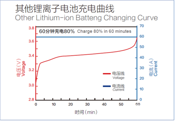钛酸锂材料对锂金属电位为1.55V,对锂金属的电位更高,即使在充电后期、低温或高倍率充电的情况下,此负极的电位也不会达到锂离子还原成金属锂的电位,避免了电池在过充过程中生成锂枝晶,安全稳定性更好。
