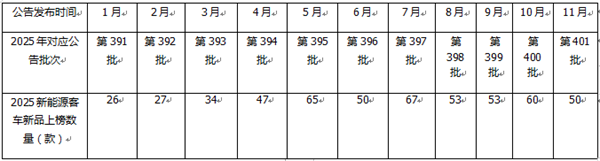 表2,根据工信部数据,2025年1-11月,各批次新能源客车公告中上榜的新能源客车数量统计: