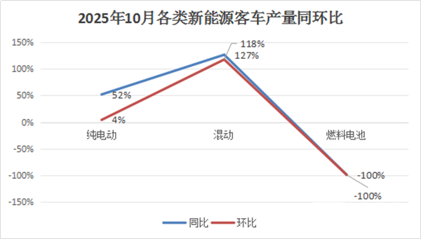也就是说,2025年10月我国新能源客车产量主要为纯电动客车。