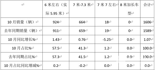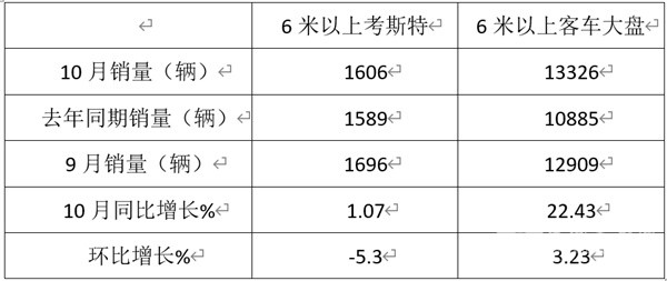 一是今年去年同期销量基数不高,给今年10月同比增长奠定了基础。二是纯电动考斯特客车在公路客车电动化提升的大背景下销量增加,给整体销量增长提供了支持。