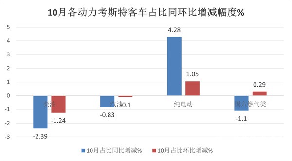 一是今年10月受新能源公交老旧更新补贴政策刺激,新能源公交客车需求明显增多,因此给今年10月大中型客车同环比呈现较大增长提供了支持,而考斯特客车市场主要是传统动力车型较多,市场需求相对较稳定;