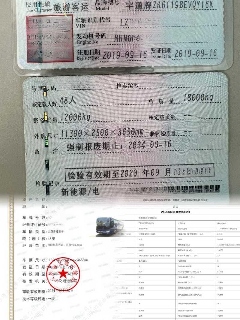 | 客车品牌 | 宇通客车 | 上牌时间 | 2019-09-11 |