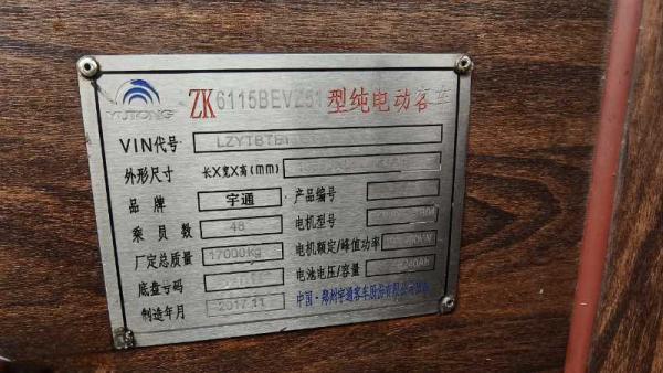 | 客车品牌 | 宇通客车 | 上牌时间 | 2017-12-21 |
