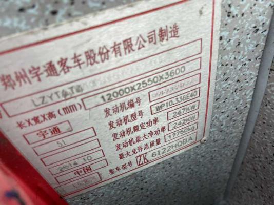 51座非营运宇通6122,2014年12月上牌,国四排放、双门、通仓行李架、法士特变速箱、潍柴336 、前盘后鼓、钢板缓速器,定金留车: