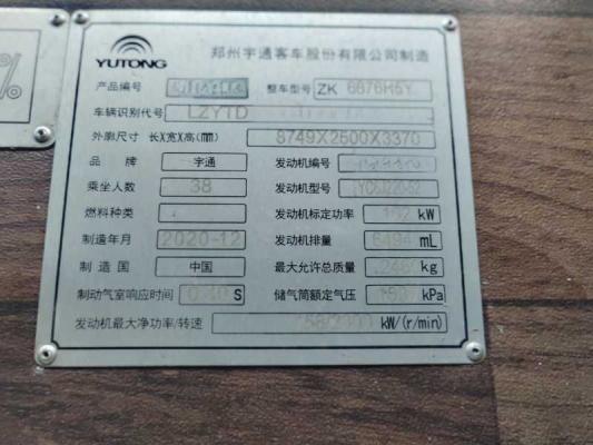 | 客车品牌 | 宇通客车 | 上牌时间 | 2020-12-17 |