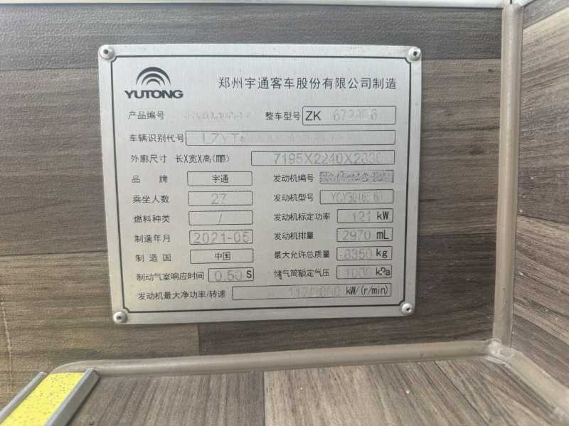 | 客车品牌 | 宇通客车 | 上牌时间 | 2021-06-23 |