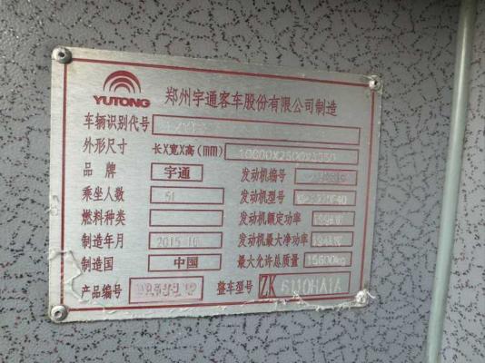 | 客车品牌 | 宇通客车 | 上牌时间 | 2015-11-24 |