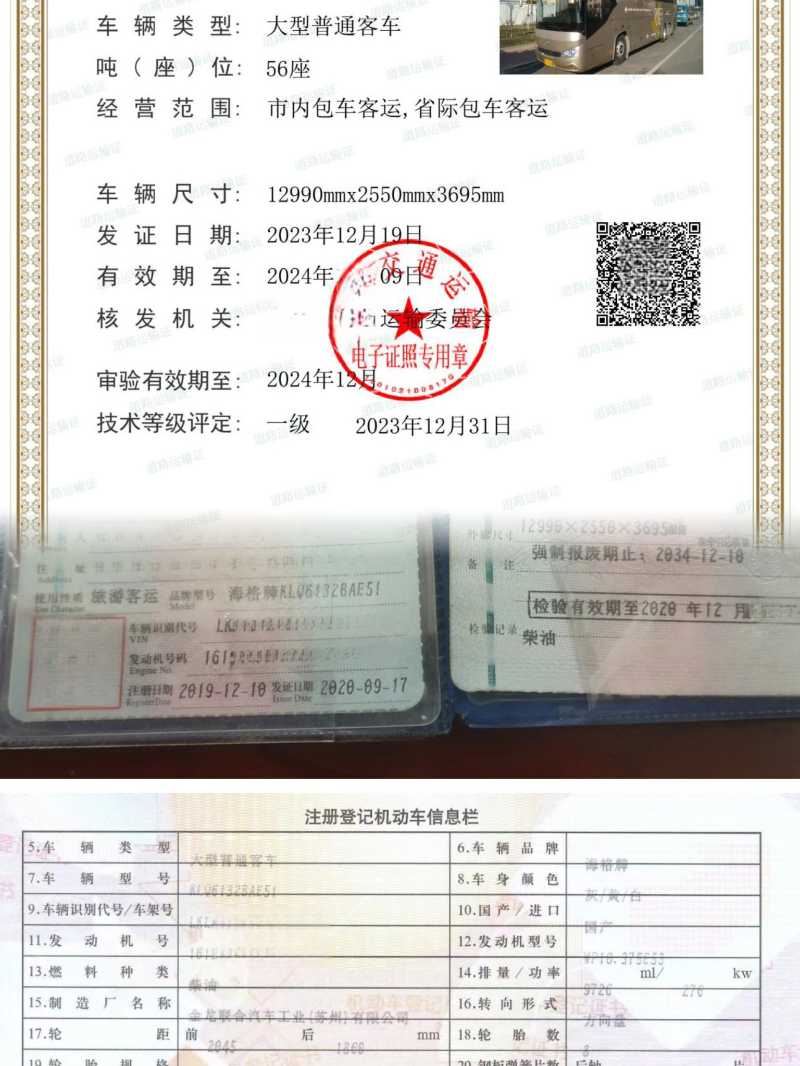 2020年早产10天,2019年12月上牌,潍柴375机头,气囊车,有中门,中空玻璃,电子风扇 锅炉暖气,平移舱门,司机卧铺!旅游客运市里省级包车,高级营运证可提营运!后吊轮56座还有2021年海格和宇通,欢迎咨询,接受置换!