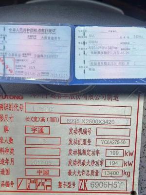 | 客车品牌 | 宇通客车 | 上牌时间 | 2017-05-24 |