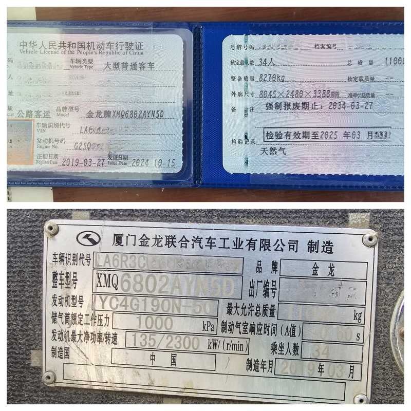 再来几台四川牌天然气CNG34座国五客车,2019年3月上牌金龙6802,气囊车,缓速器,安全门,有暖气,公路客运可提营运。