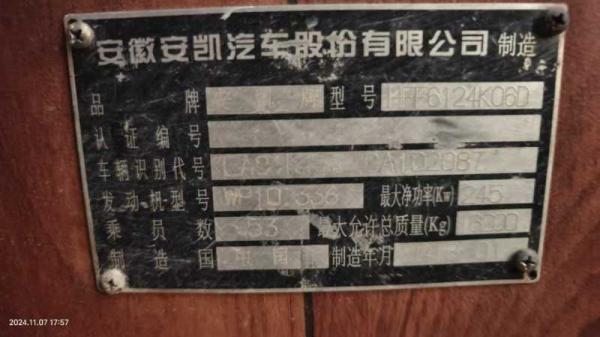 2013年2月上牌安凯6124,潍柴336机头,气囊车有中门,新款小挂挡杆,车漆,天花板,侧板,仪表台都是花了五六万翻新的,旅游客运性质可提营运,粤牌。