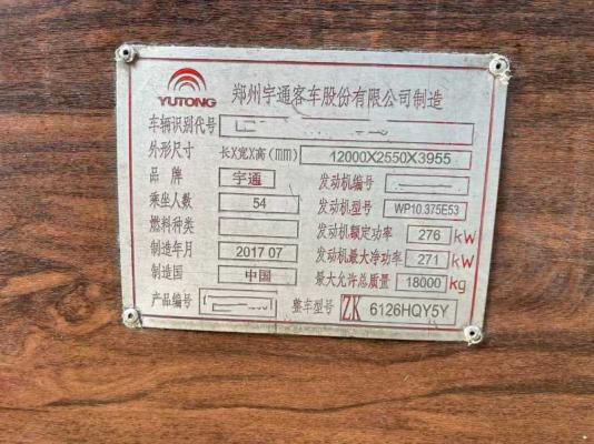 | 客车品牌 | 宇通客车 | 上牌时间 | 2017-08-18 |