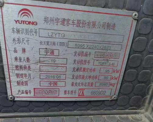 | 客车品牌 | 宇通客车 | 上牌时间 | 2016-09-29 |