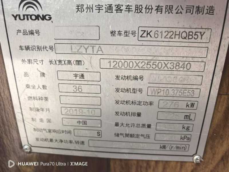 | 客车品牌 | 宇通客车 | 上牌时间 | 2019-11-14 |