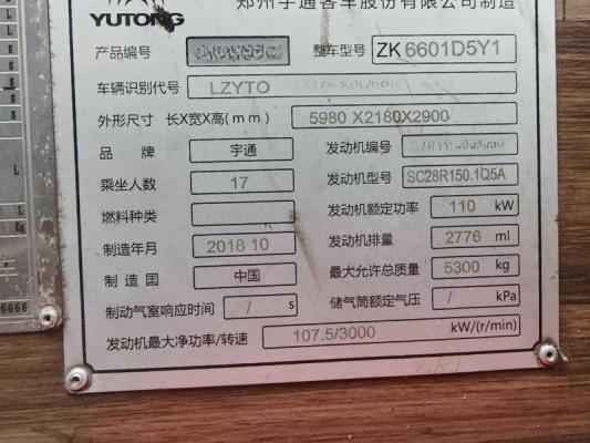 | 客车品牌 | 宇通客车 | 上牌时间 | 2019-03-13 |